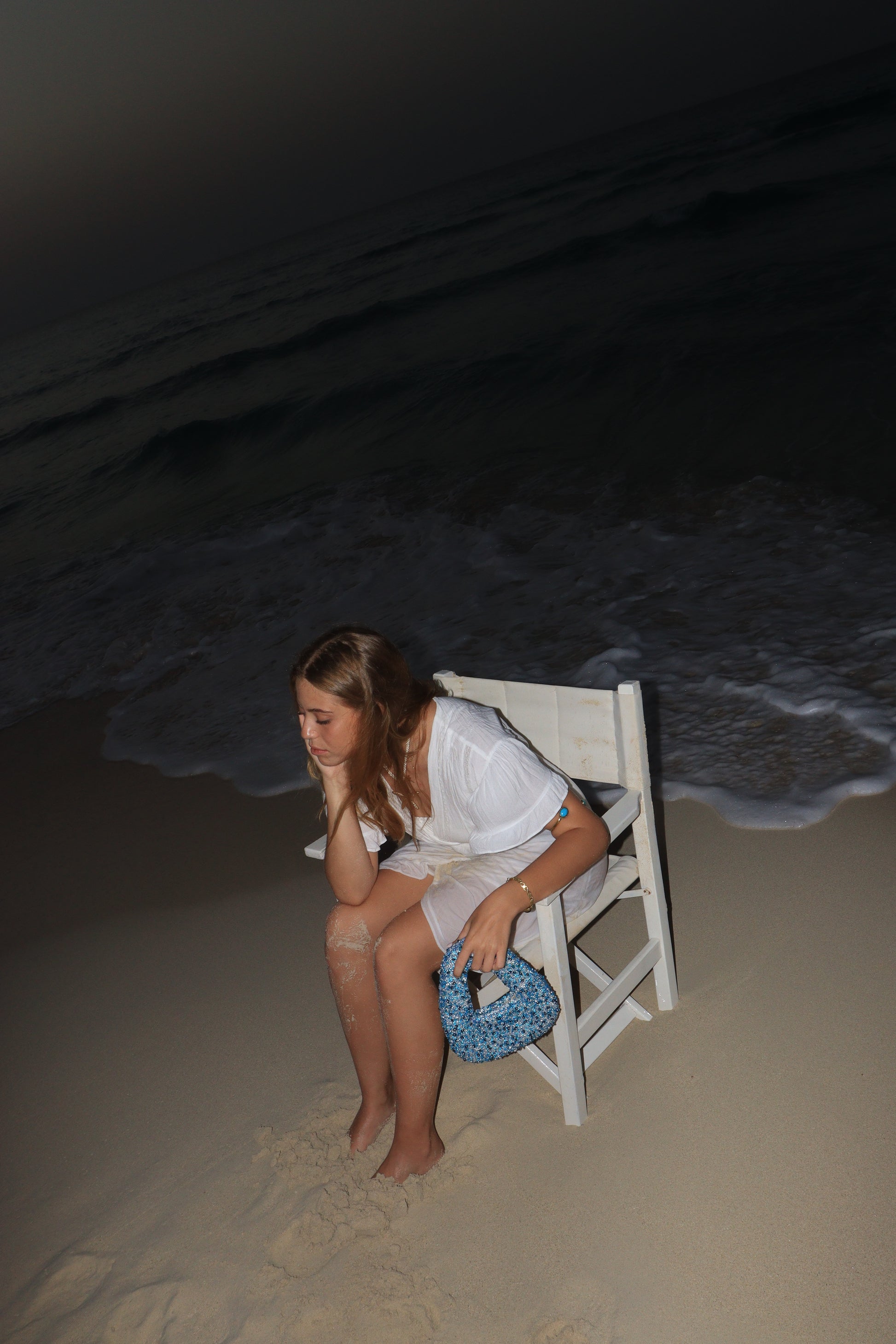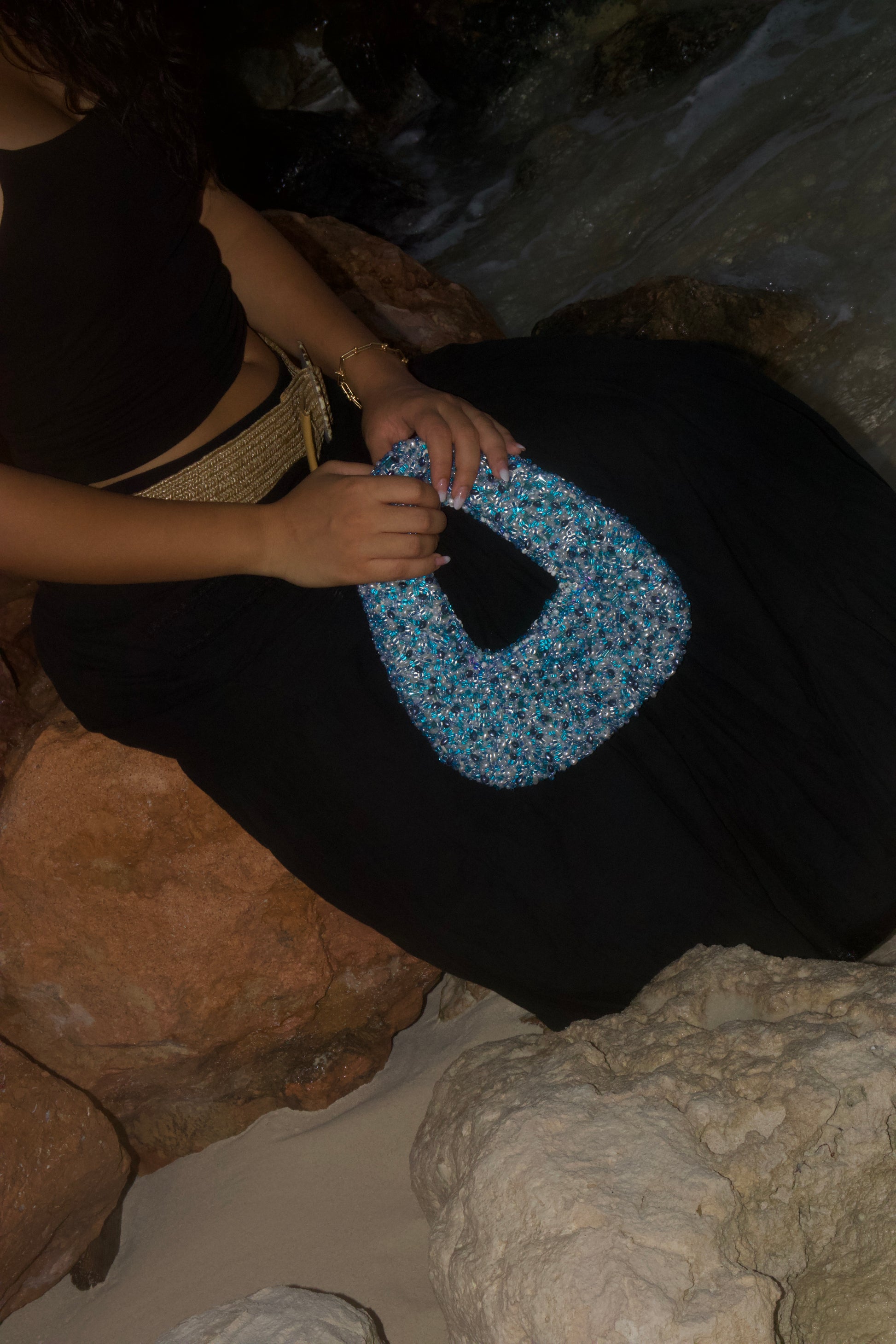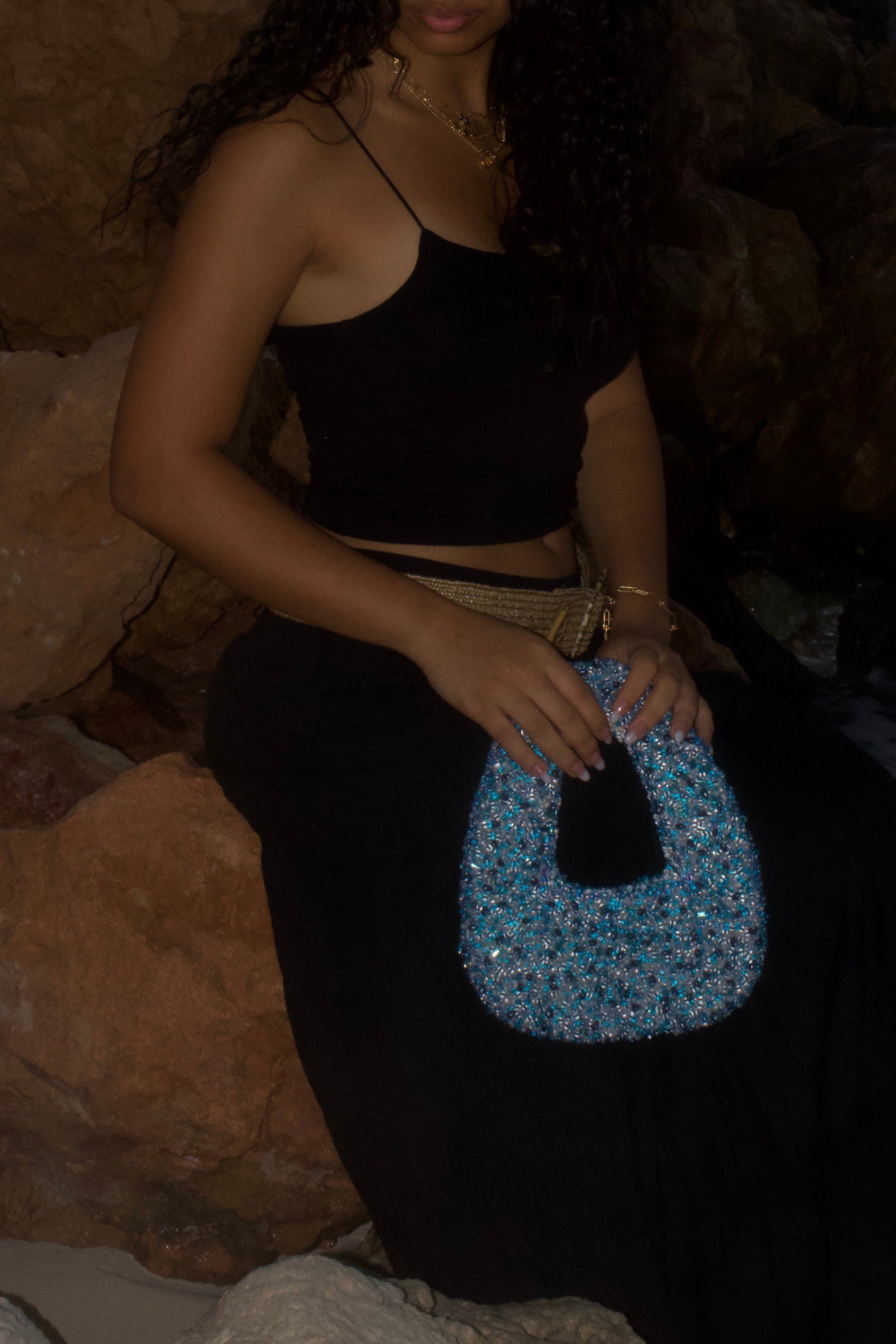 Calm, fresh, and quietly striking, LUNA in AQUA channels the serenity of ocean waves. Shimmering aqua and white beads reflect light beautifully, while the padded satin lining keeps your belongings secure and cushioned. Spacious enough for your phone, wallet, and other essentials, it’s perfect for seaside strolls or sahel nights out.